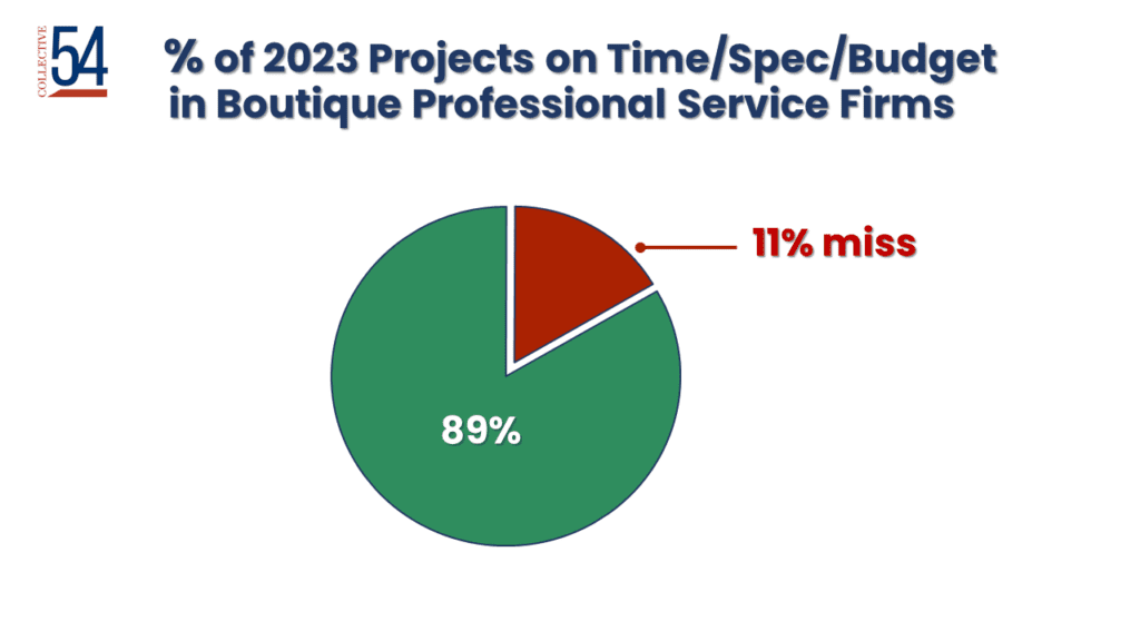 % of 2023 Projects on Time/Spec/Budget in Boutique Professional Service Firms